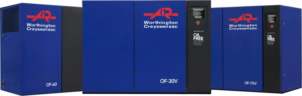 Worthington Creyssensac ima več kot 80 let izkušenj in znanja! Vemo, da je zrak brez olja nujno potreben za različne industrije, zato vam želimo ponuditi najboljše tehnologije. Poleg tega vam bo naš planet hvaležen za kompresorje brez olja in čist zrak, ki ga proizvajajo! Zračni kompresorji brez olja so bili posebej zasnovani za aplikacije, ki zahtevajo 100 % čist in čist stisnjen zrak. Tako bo vaša proizvodnja imela koristi od vrhunske kakovosti zraka!